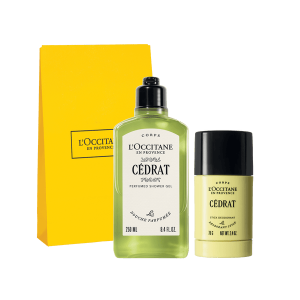 Otkrijte svježinu i energiju citrusa sa Setom Cédrat, idealnim za svakodnevnu njegu tijela i dugotrajnu svježinu. Parfemski gel za tuširanje nježno čisti kožu, dok dezodorans u stiku pruža pouzdanu zaštitu i ugodan miris tijekom cijelog dana. Elegantna žuta poklon vrećica čini ovaj set savršenim za darivanje ili osobni užitak.